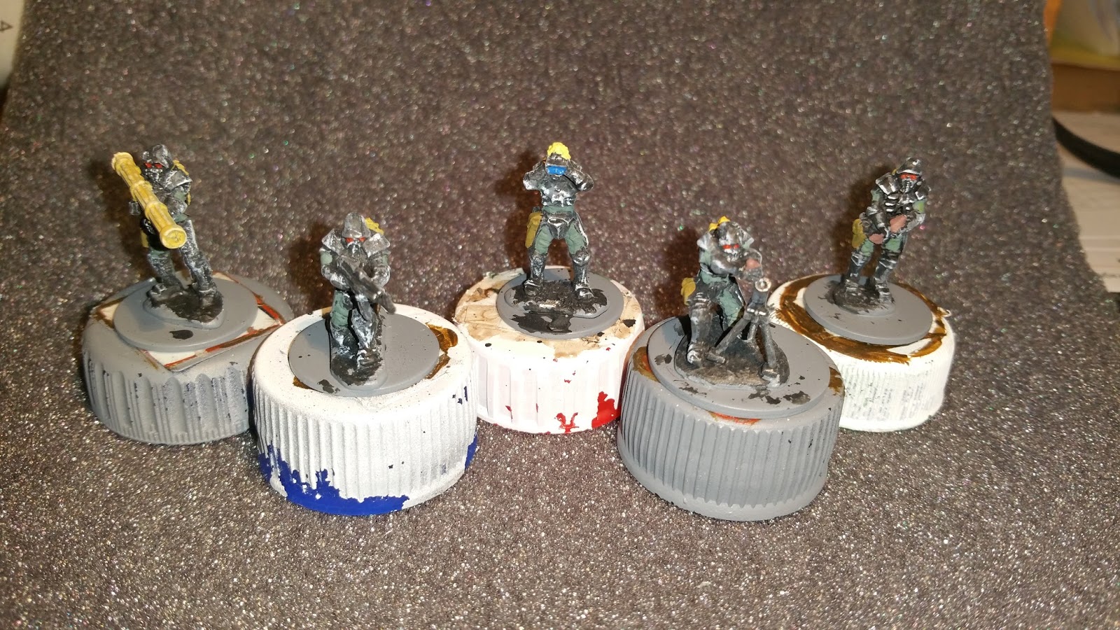 I painted them in panzergray and highlighted them with lightgrey. For the red eyes i was inspired by Jin Ro and Killzone.